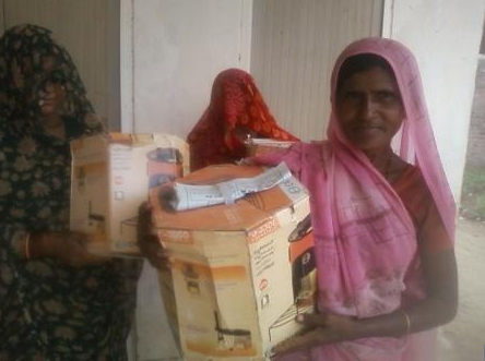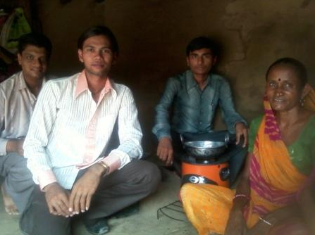 Der Plan ließ sich erst wenige Wochen nach meiner Rückkehr nach Deutschland mithilfe der Volksbank Westrhauderfehn an der Ostsee verwirklichen. Einer ihrer Mitarbeiter lud mich zu einem Vortrag ein. Ein Honorar verlangte ich nicht, stattdessen eine Spende für die Öfen. Die Volksbank war einverstanden, so dass schließlich die stolze Summe von 3000 Euro zusammen kam, die ich an SEWA überweisen ließ. Daraufhin kauften die SEWA-Mitarbeiterinnen in Indien die Öfen und verteilten sie an die Frauen des Dorfes. Für sie stellte dieses für uns so selbstverständliche Haushaltsgerät eine neue und vor allem viel bessere Lebensqualität dar. Shantaben hatte doppelten Grund zur Freude: An diesem Tag sah sie nach vielen Jahren endlich ihre Söhne wieder, die eigens aus diesem Anlass ihre Mutter besuchten.